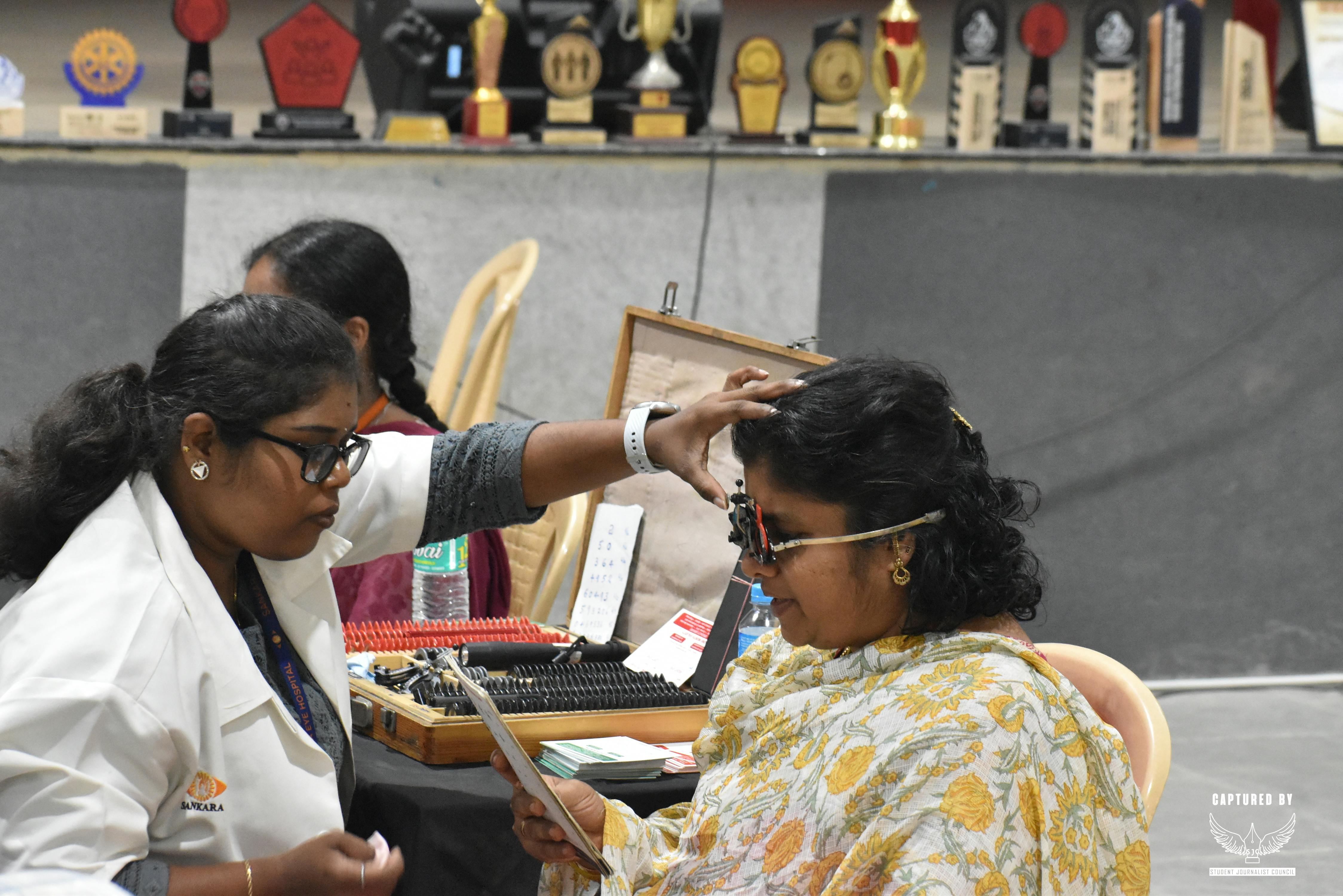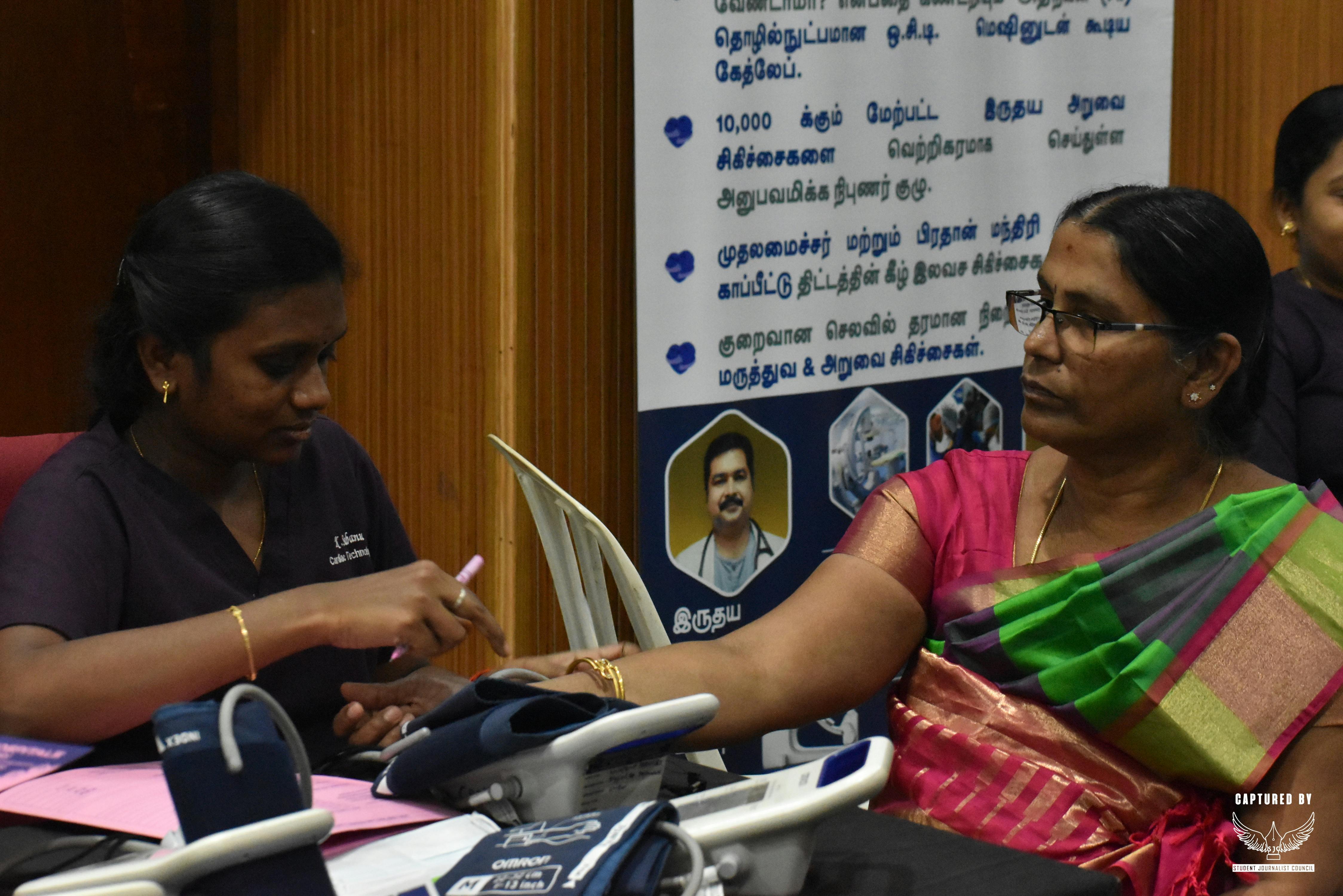 The event happened at the main auditorium. In the morning I went there, and the Rotaract volunteers welcomed me and guided me. I went for a general body check; the doctors checked my weight, height, and BP. They gave advice like "drink more water and stay hydrated. " I saw many people checking their BP, especially the elderly.